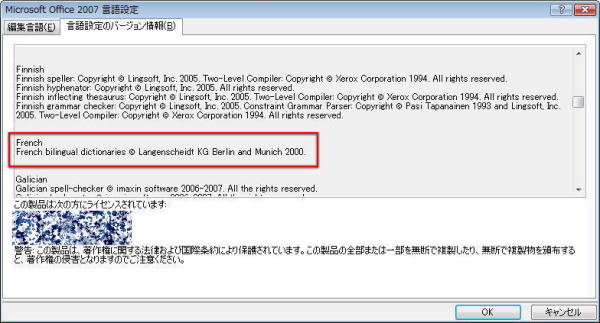 「Microsoft Office 2007 言語設定」画面が開くので、「編集言語」からフランス語を探して選択し、[追加ボタン]を押す。